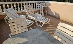 1 large balcony with beach chair, table and chairs